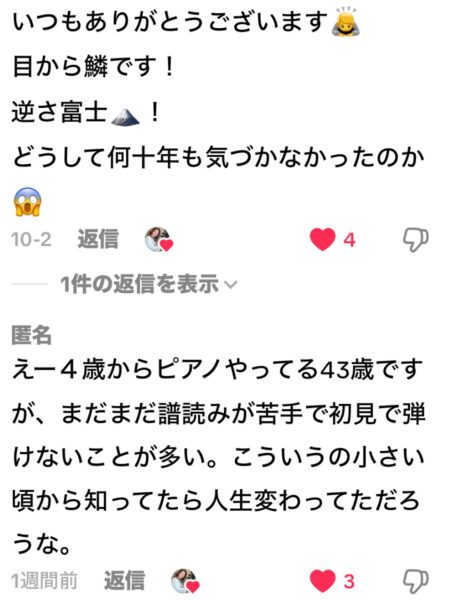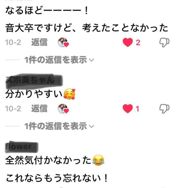 うちの生徒さん達には見慣れた教え方かもしれませんが、コメント欄はもっと早く知りたかった、というコメントでいっぱい。